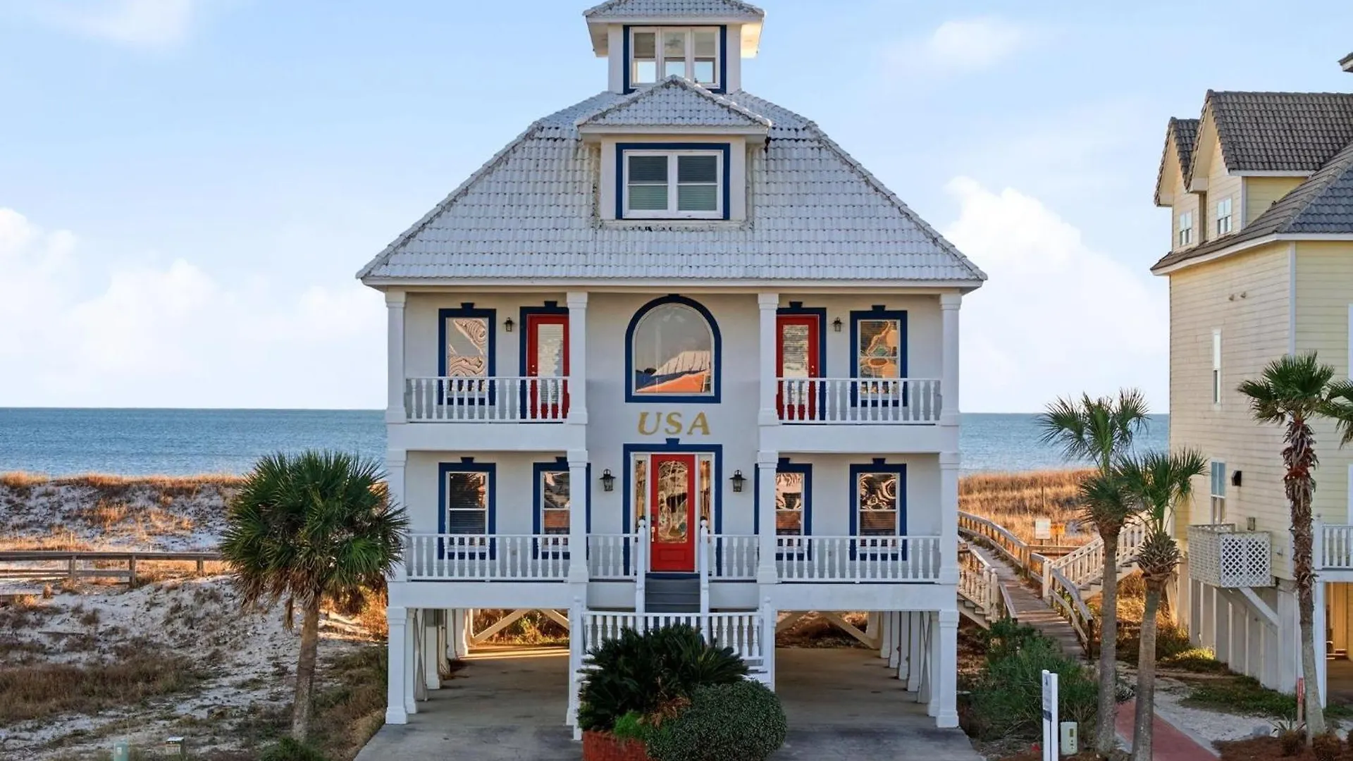 The beachfront Usa Beach House Gulf Shores villa is located 1.6 miles from Fort Morgan and provides fishing for active guests. Located about 10 minutes' drive from Fort Morgan State Historic Site, the villa provides Wi-Fi and complimentary private parking.